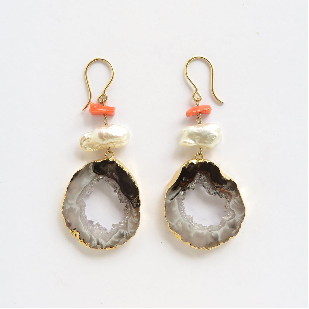 Baroque pearls & pink coral combined with a beautiful two tone agate geode.