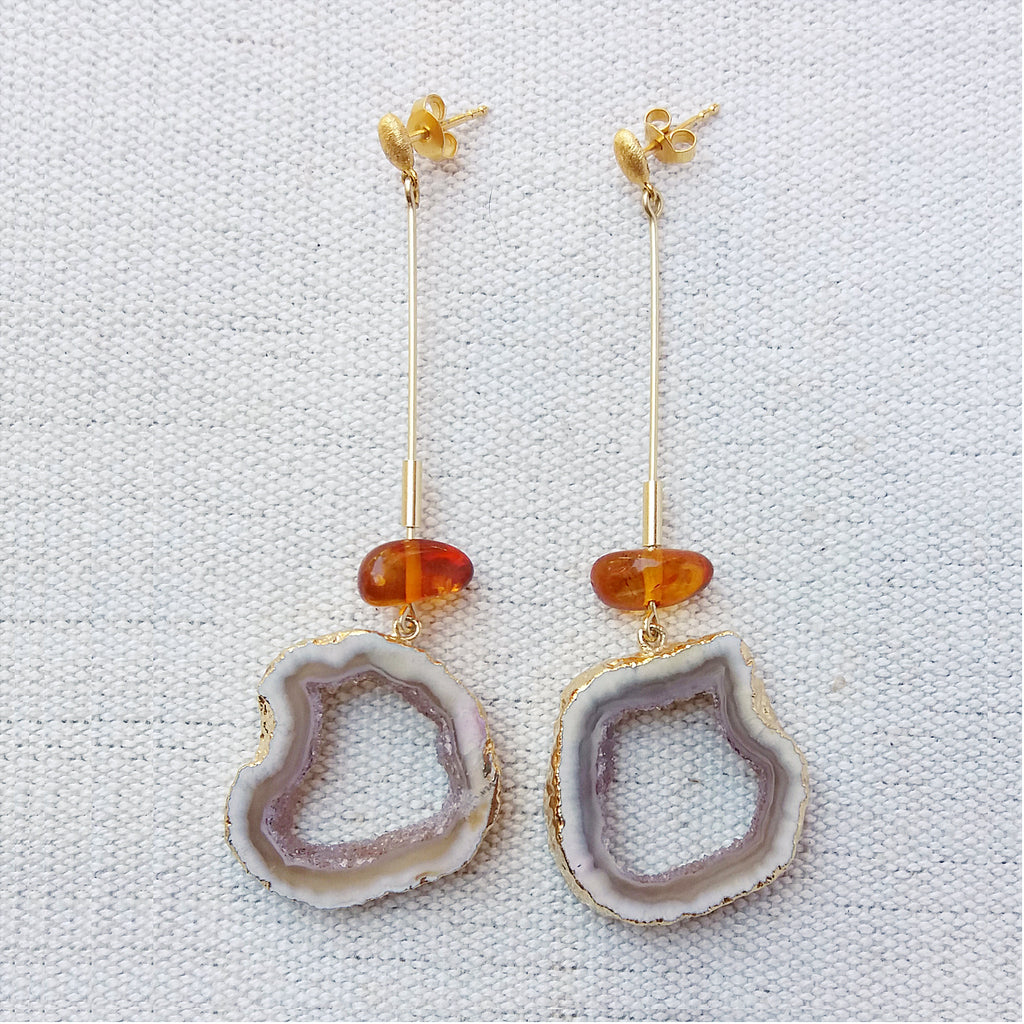 Amber & white geode Stick Earrings