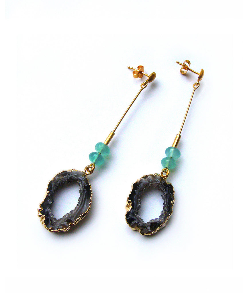 Wildly elegant combination of black geodes with blue chalcedony beads.