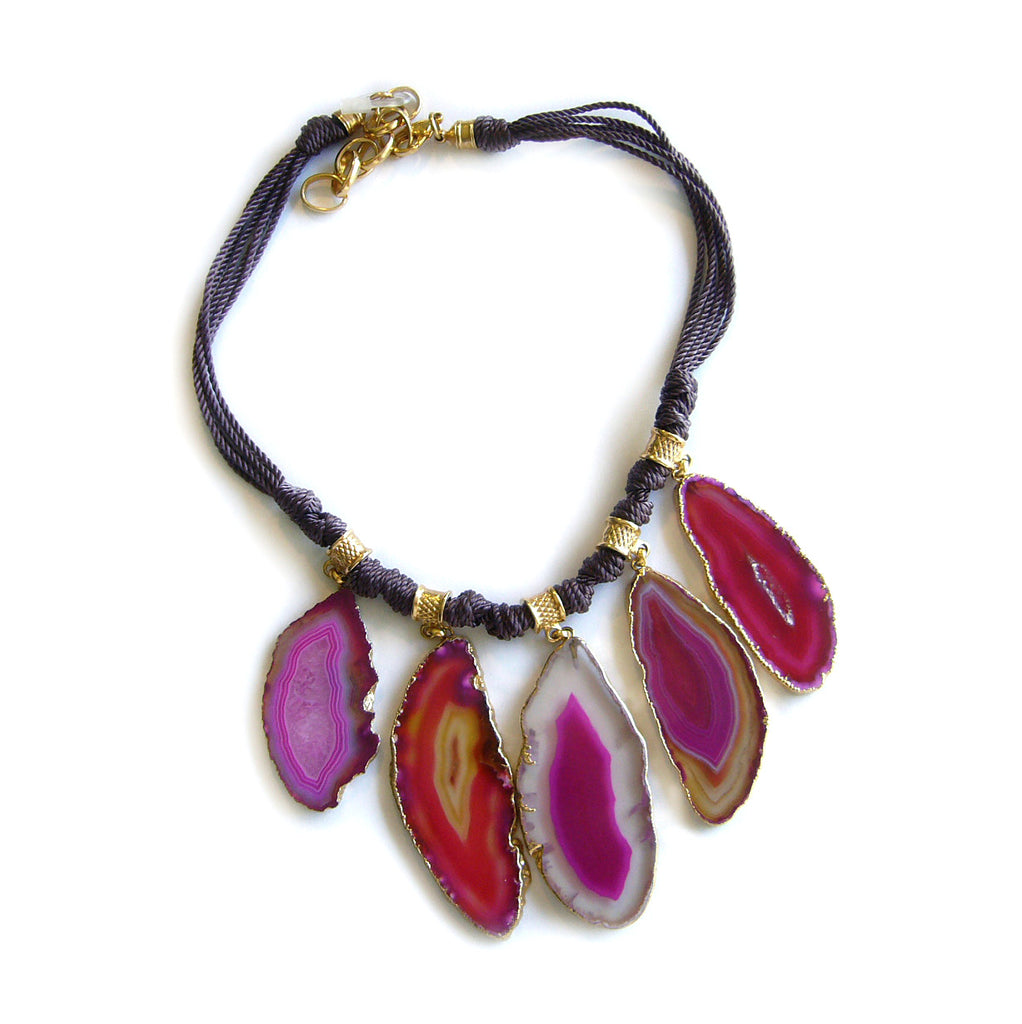 Five beautiful pink coloured agates like the feathers of an exotic bird.