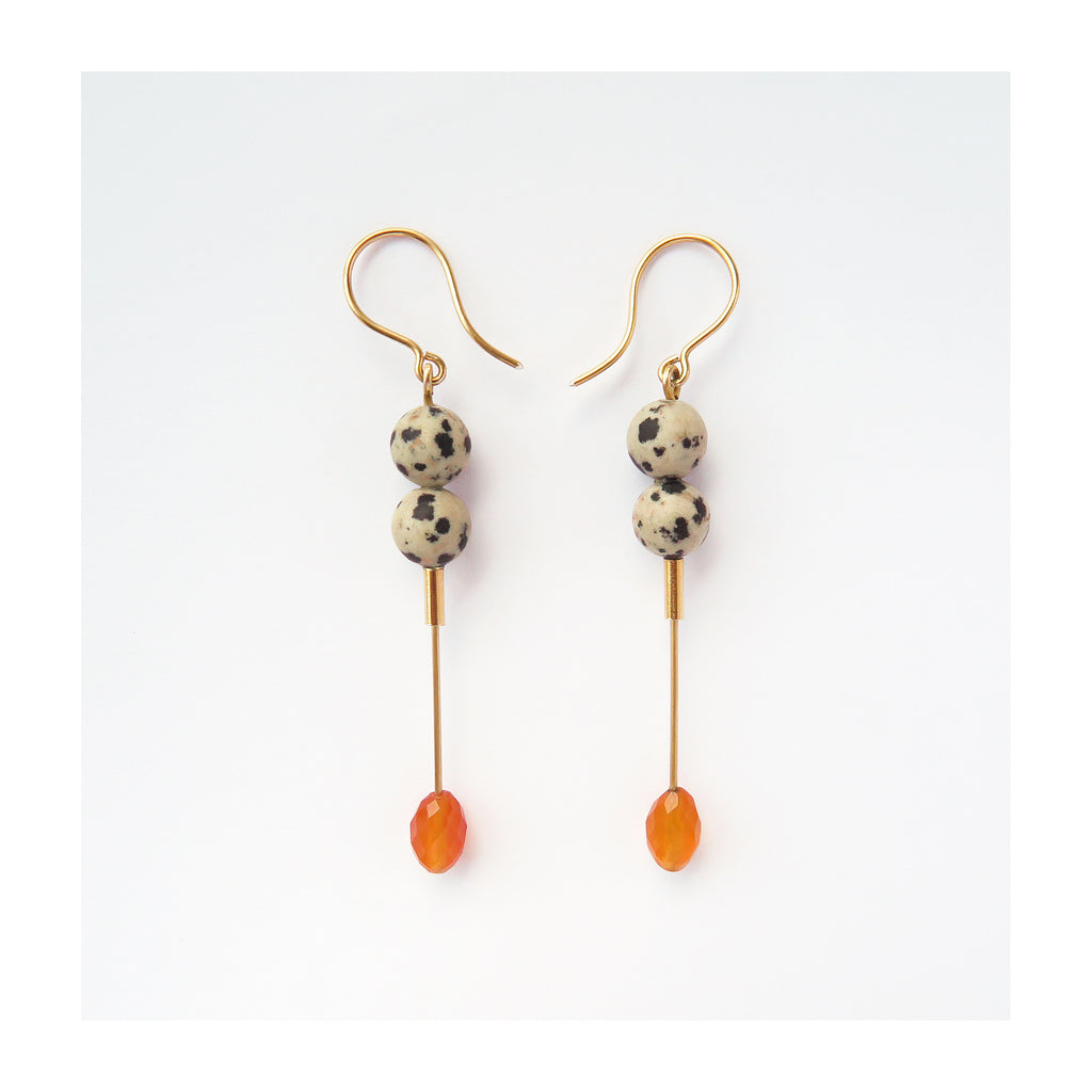 Bolinhas de dalmatina e ágata cornalina facetada.