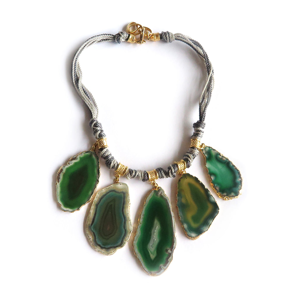 Five carefully selected green coloured agate stones, with a rich play of colour and pattern.